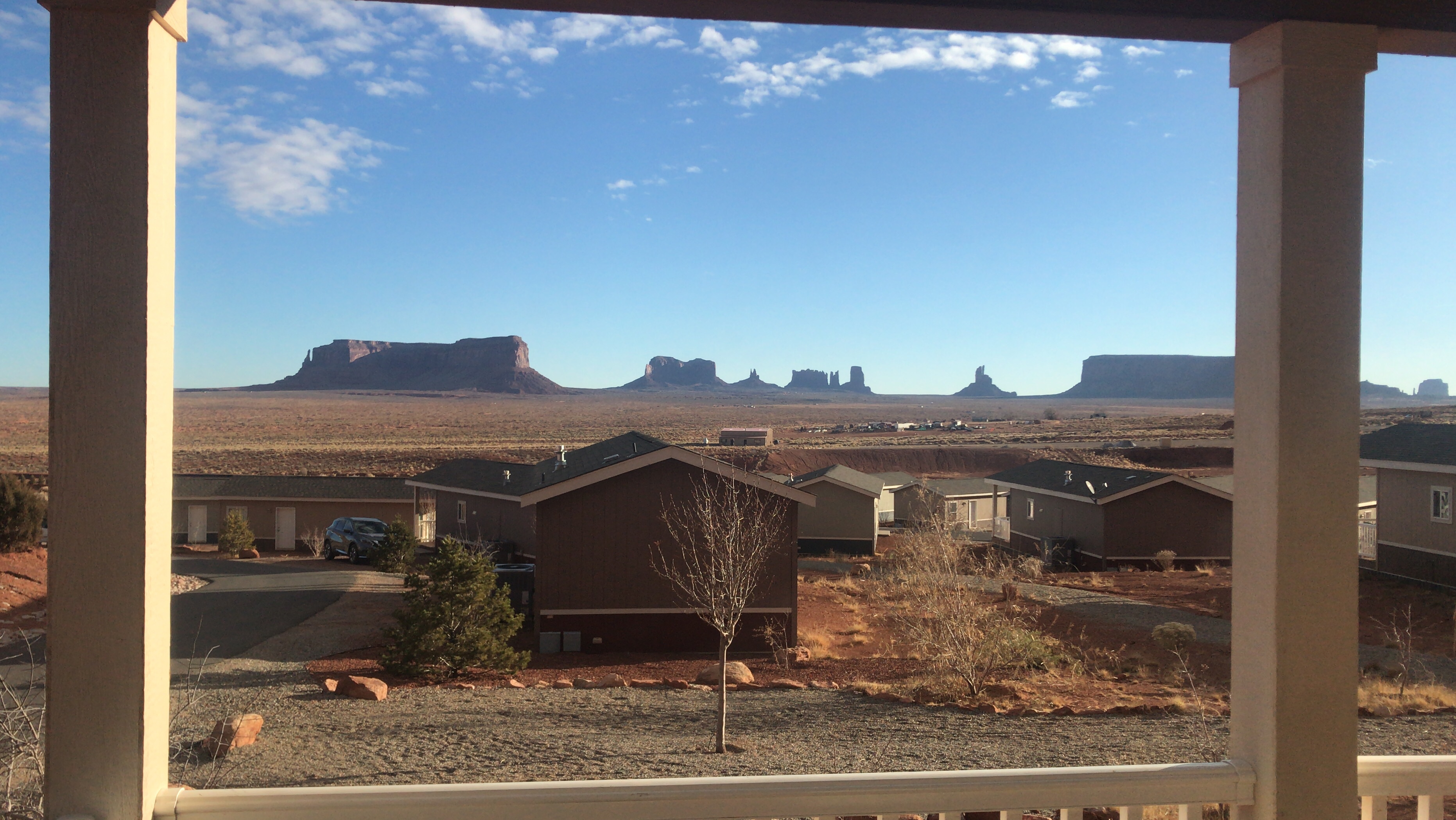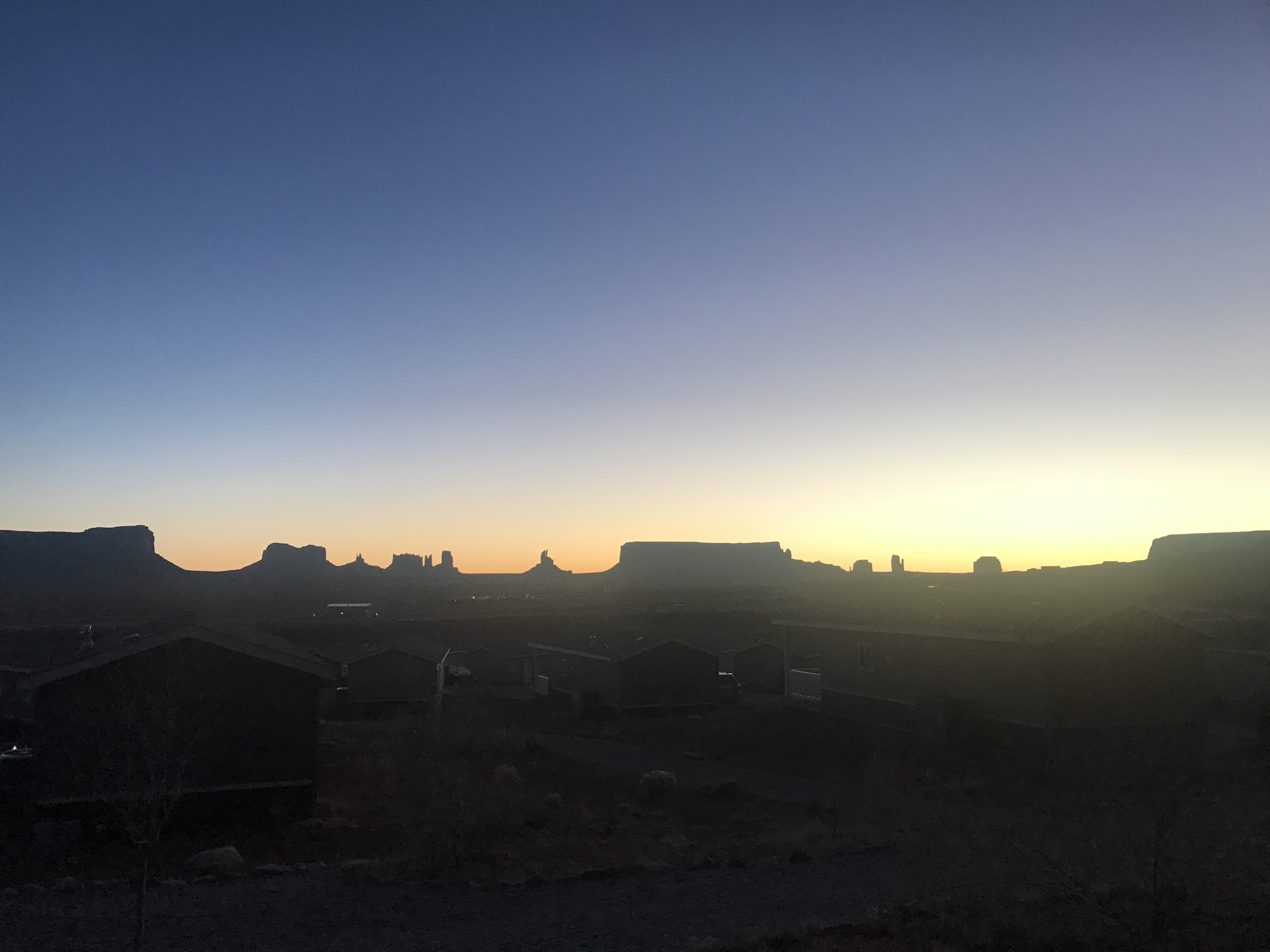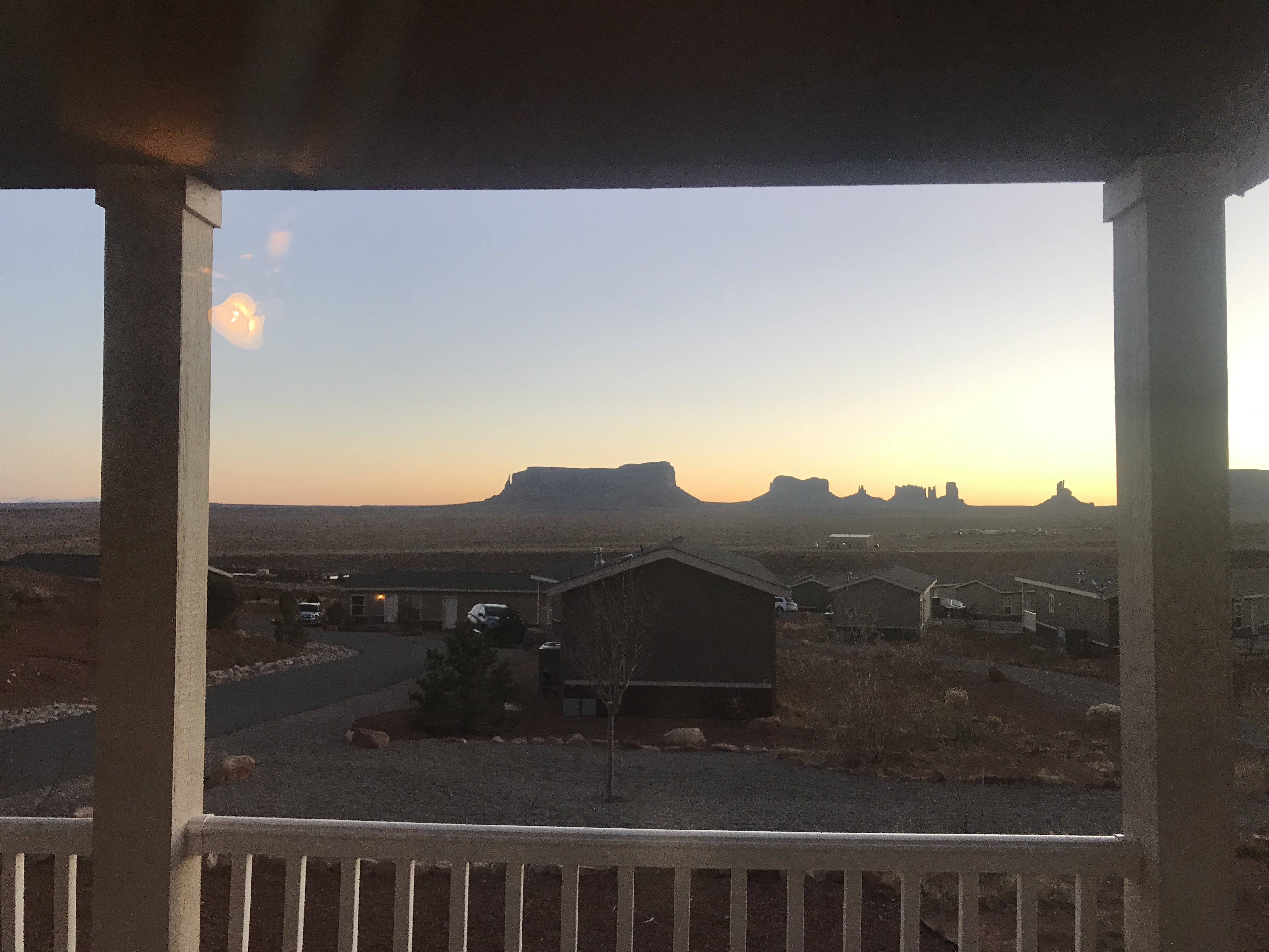 Nuestra cabaña tiene unas vistas a Monument Valley que estamos contemplando al amanecer. ¡Que pasada de despertar en Navidad!