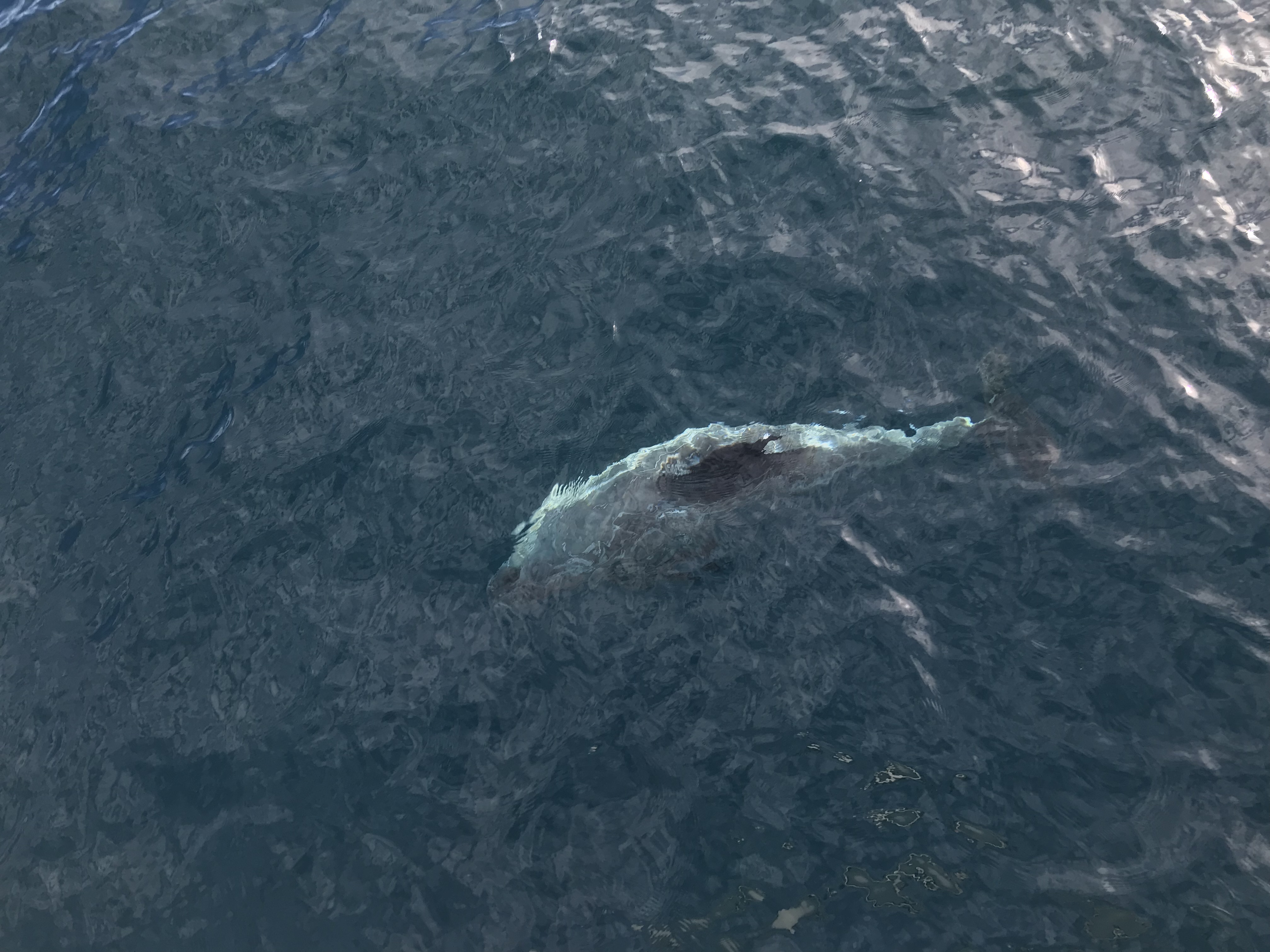 El mar estaba un poco revuelto, 15 metros de olas, y eso hizo que muchos tiraran el desayuno por la borda. Pero bueno, valía la pena el mareo para poder ver en nuestro viaje focas, leones marinos, delfines y ballenas jorobadas.