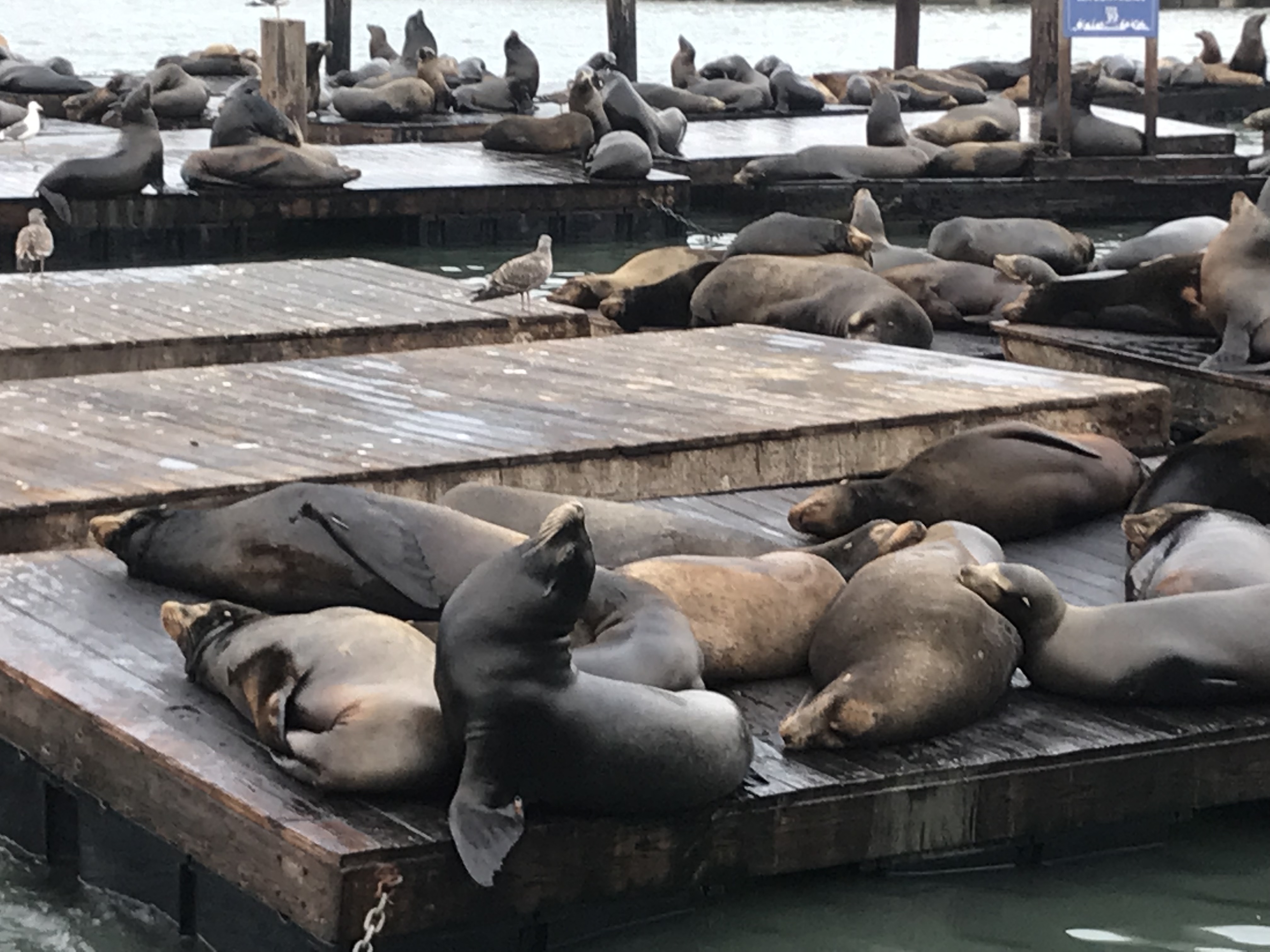 Nos levantamos para despedir San Francisco, pero sin antes ver el Pier 33. Aquí se encuentra una comunidad de focas y leones marinos que vinieron tras el terremoto de 1989 para instalarse y hacer de esta parte del puerto su hogar.
