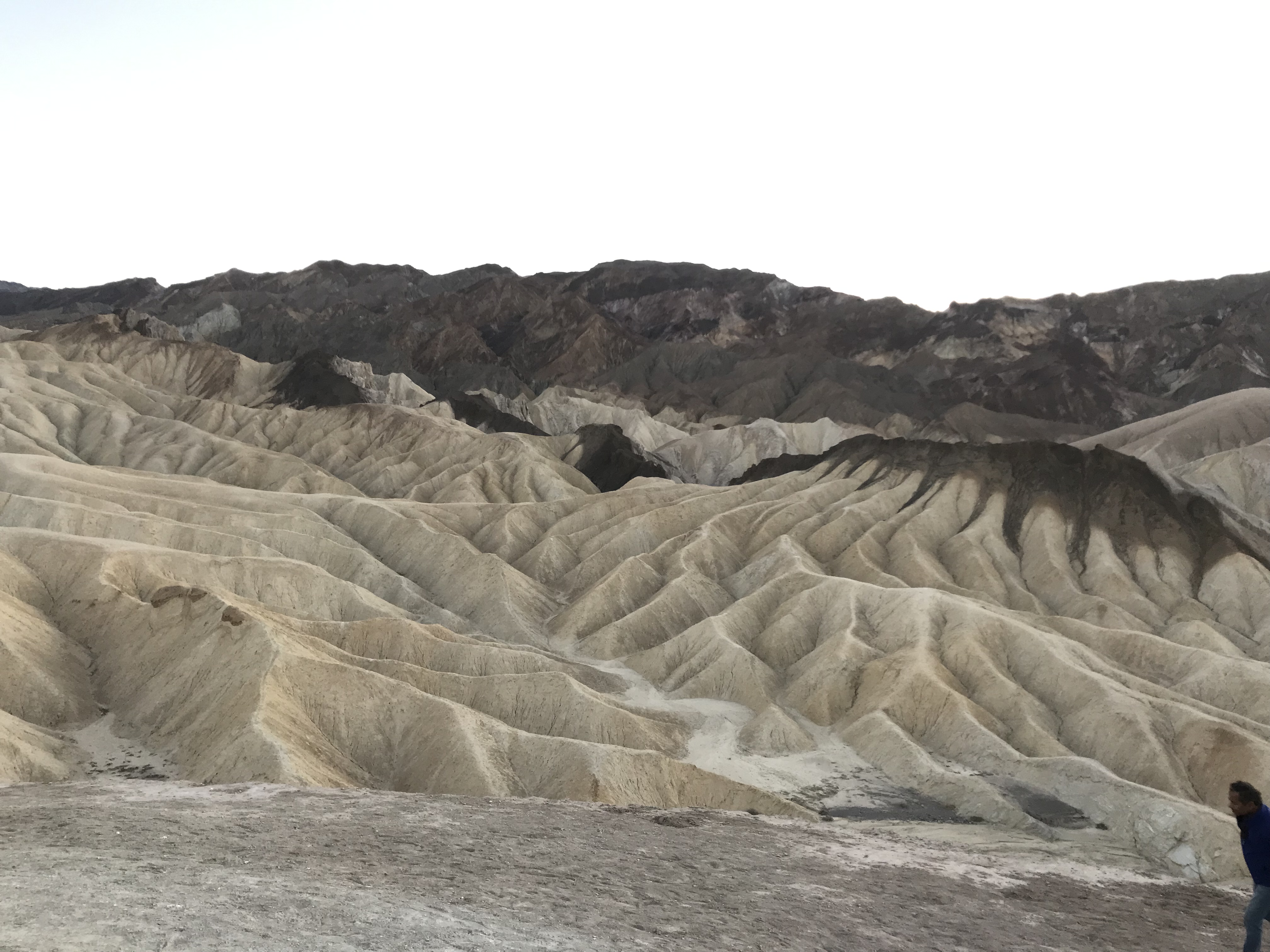 Antes de marcharnos, nos asomamos por Zabriskie Point, una colina donde divisar montañas amarillas que parecen que se arrugasen.