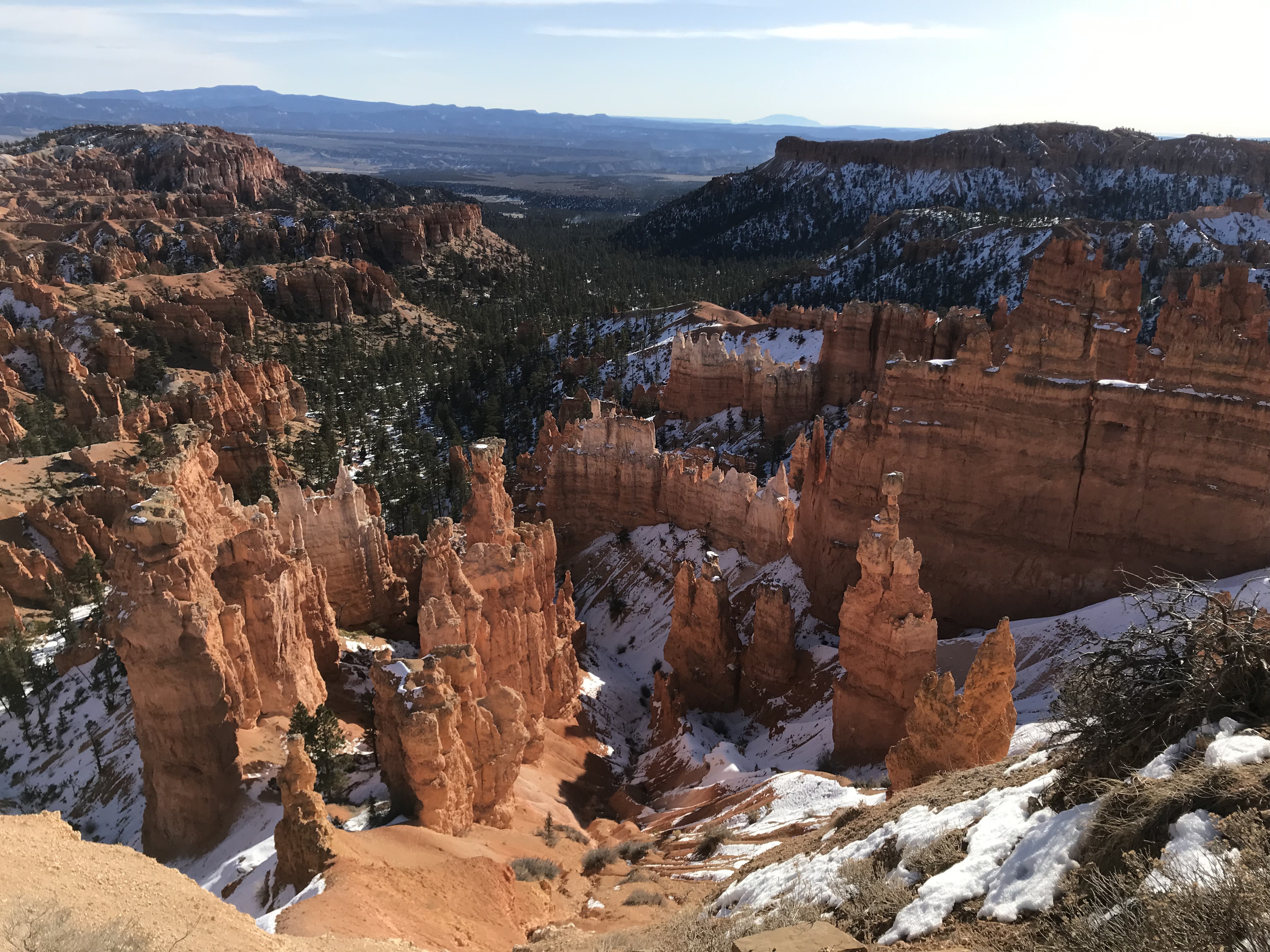Tras desayunar nos acercamos a Bryce Canyon, donde pudimos contemplar las formaciones espectaculares que nos había preparado Pachamama, acompañadas de nieve para sorprendernos todavía más.