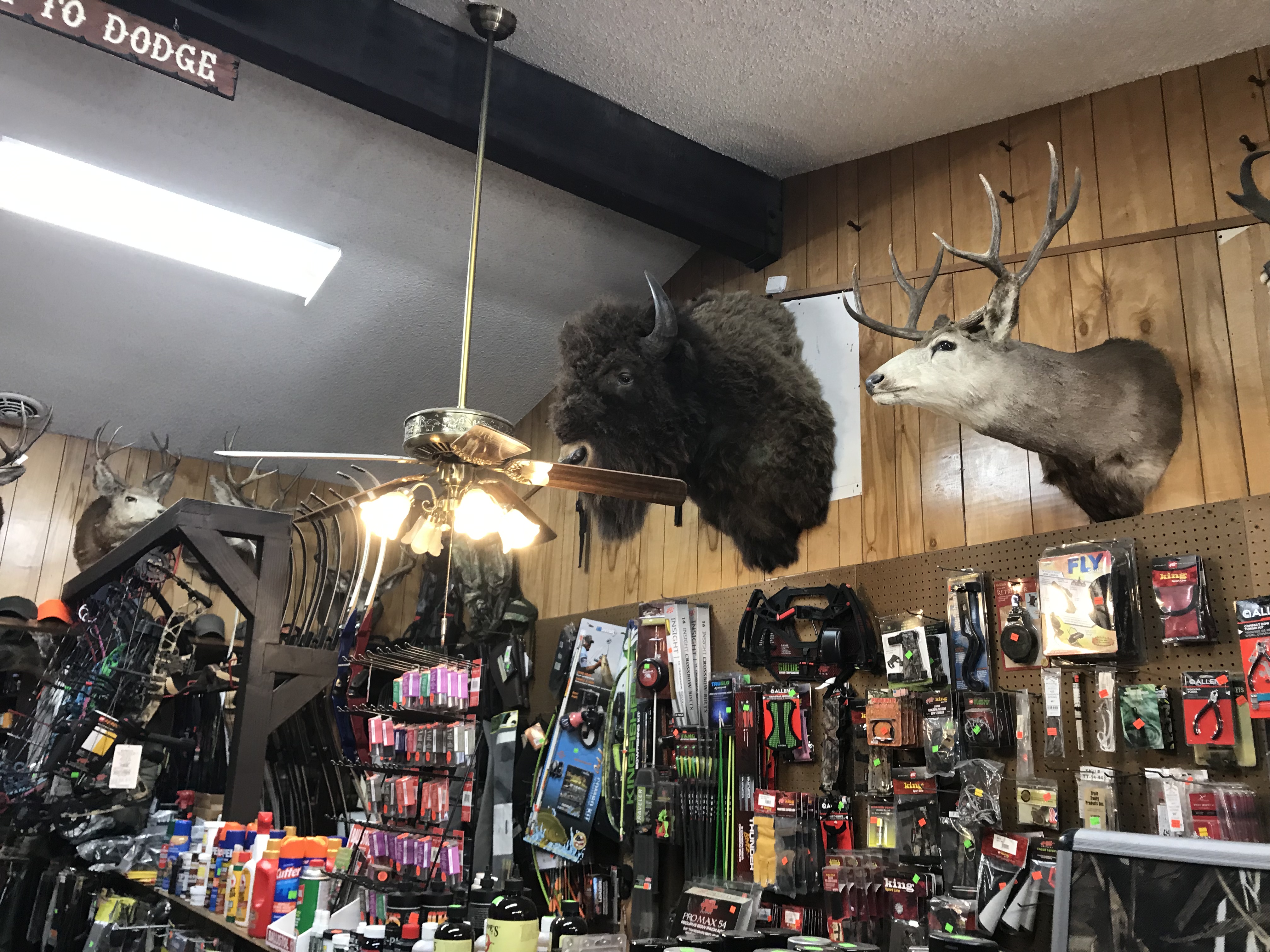 Hicimos una parada para comprar algunas cosas para el viaje. En esa parada al lado del supermercado había una armería. Entramos para saciar nuestra curiosidad. Un señor muy amable contrastaba con todos los trofeos de los pobres animales que colgaban de las paredes. En la tienda podías comprar todo tipo de armas, increíble pero cierto. Nos llamo la atención un spray que servía para ahuyentar osos.