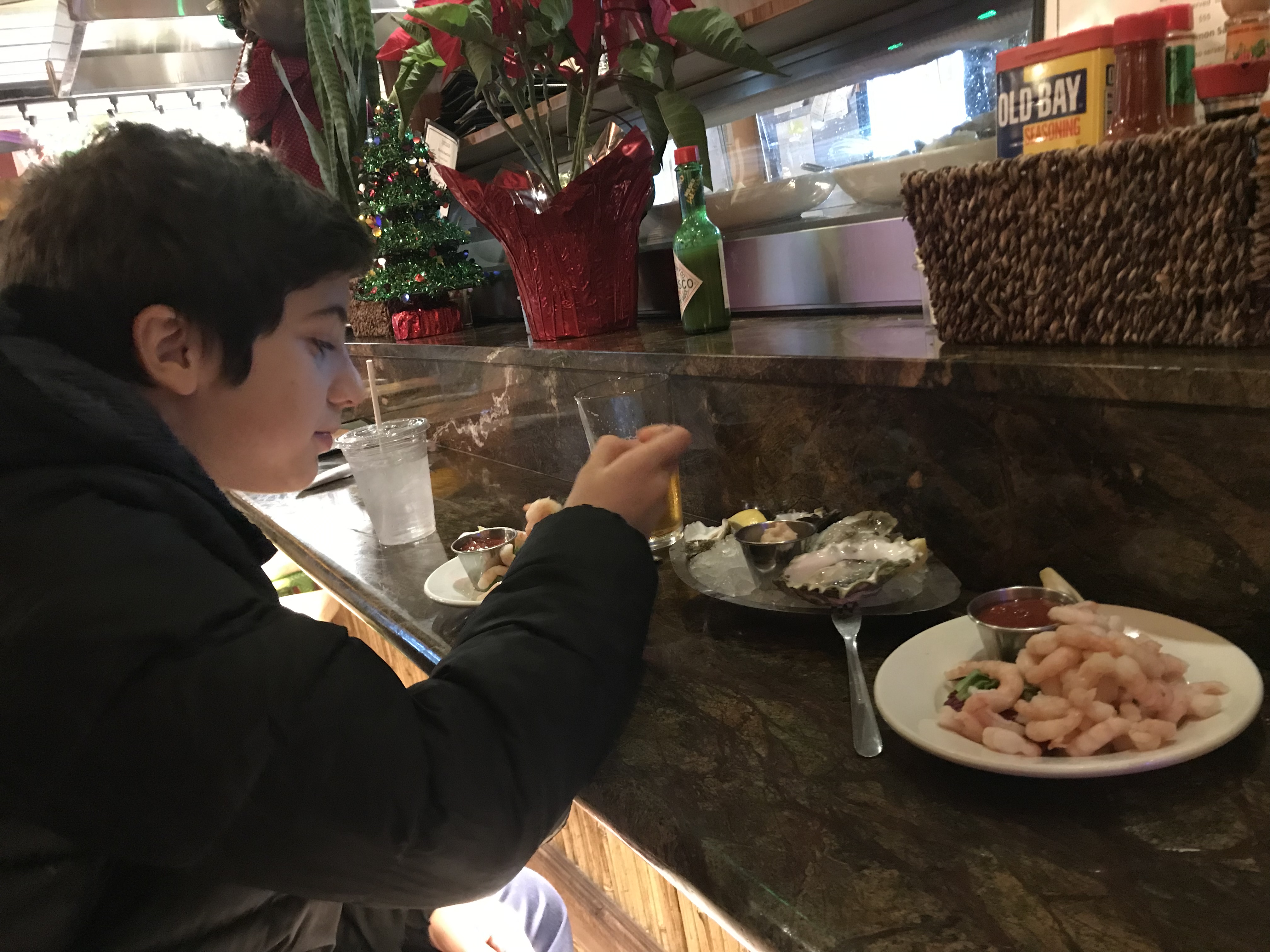 Para acabar el día, nos fuimos a cenar a uno de tantos restaurantes que rodean el puerto. Que mejor que unas ostras y gambas para acabar el día.