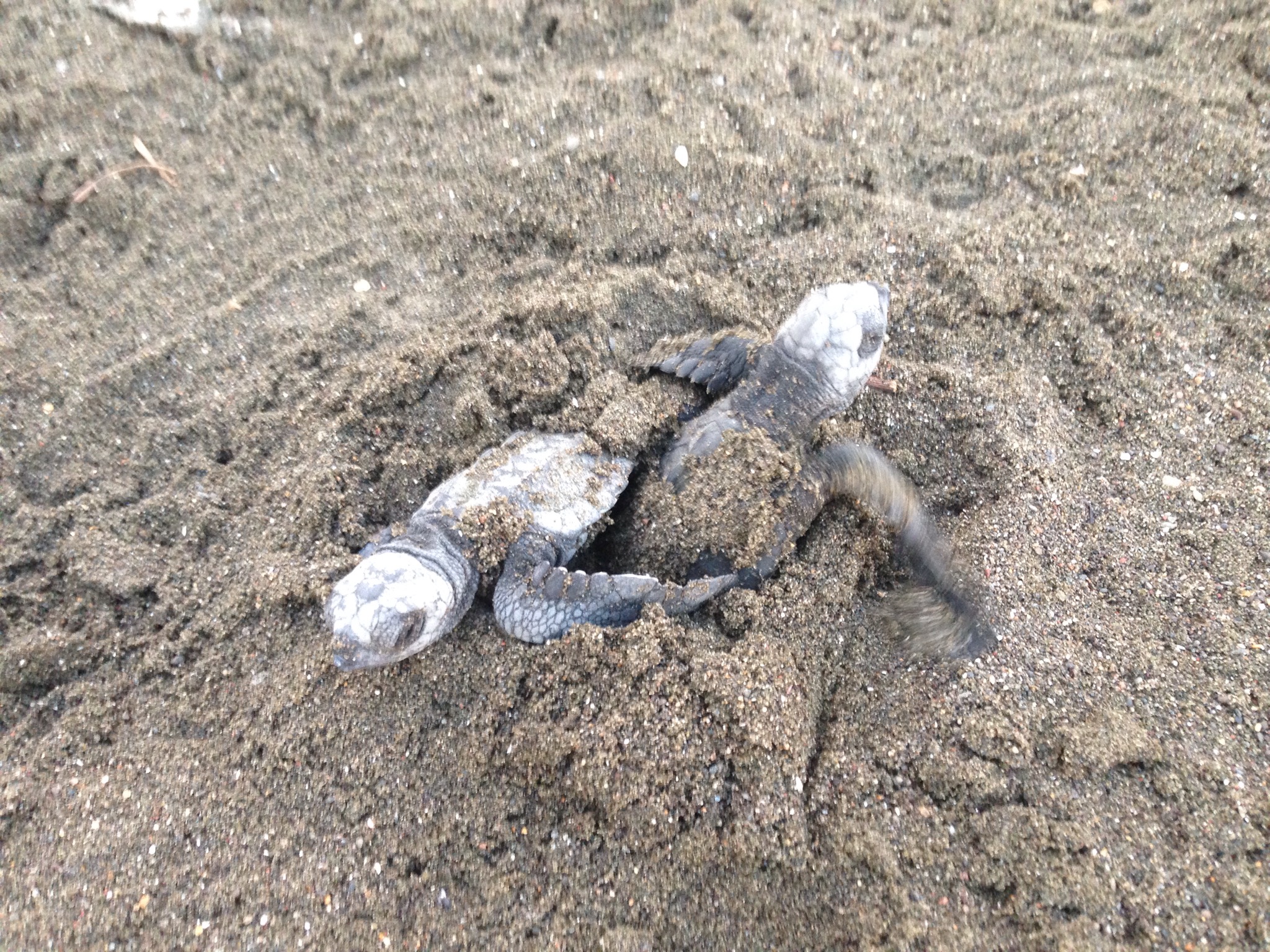 Nos hemos levantado a las 4 con ganas de ver alguna tortuga desovar y ver nacer a tortuguitas. Y vimos lo ultimo.