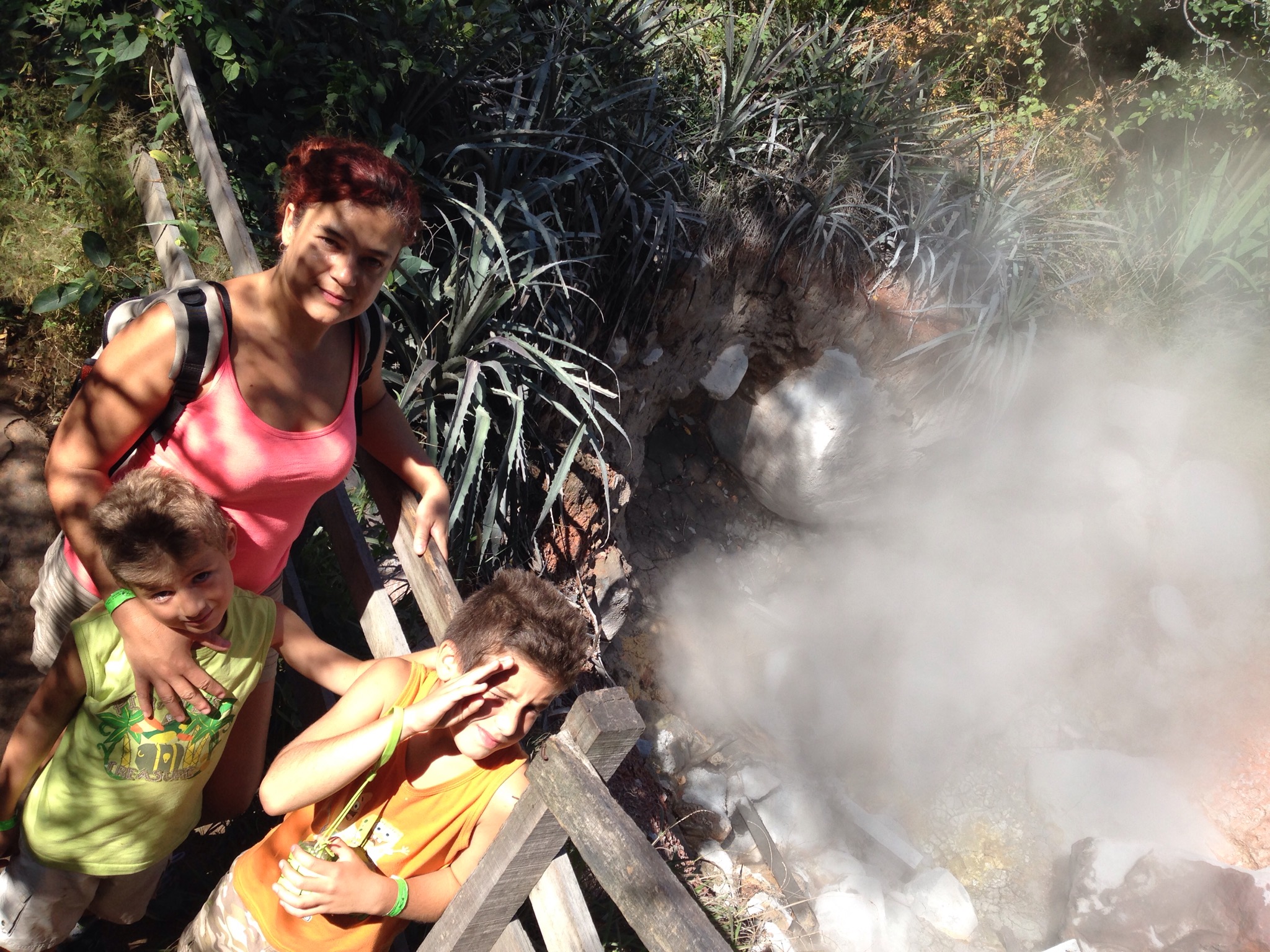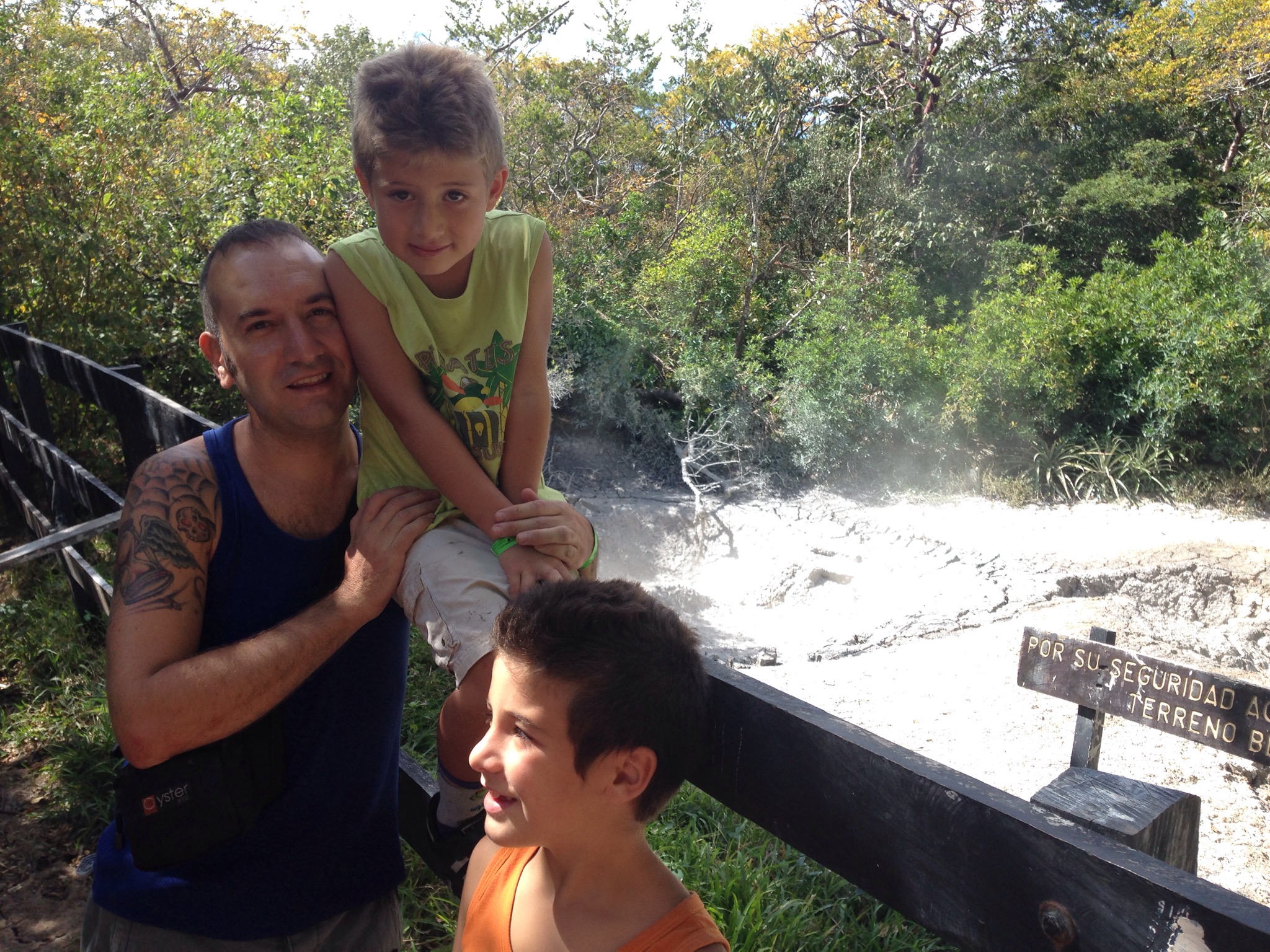 El lunes intentamos hacer rutas alternativas por el parque, pero era todas muy largas para los peques y muy angostas para el coche, así que decidimos relajarnos en los baños termales calentados por el volcán.