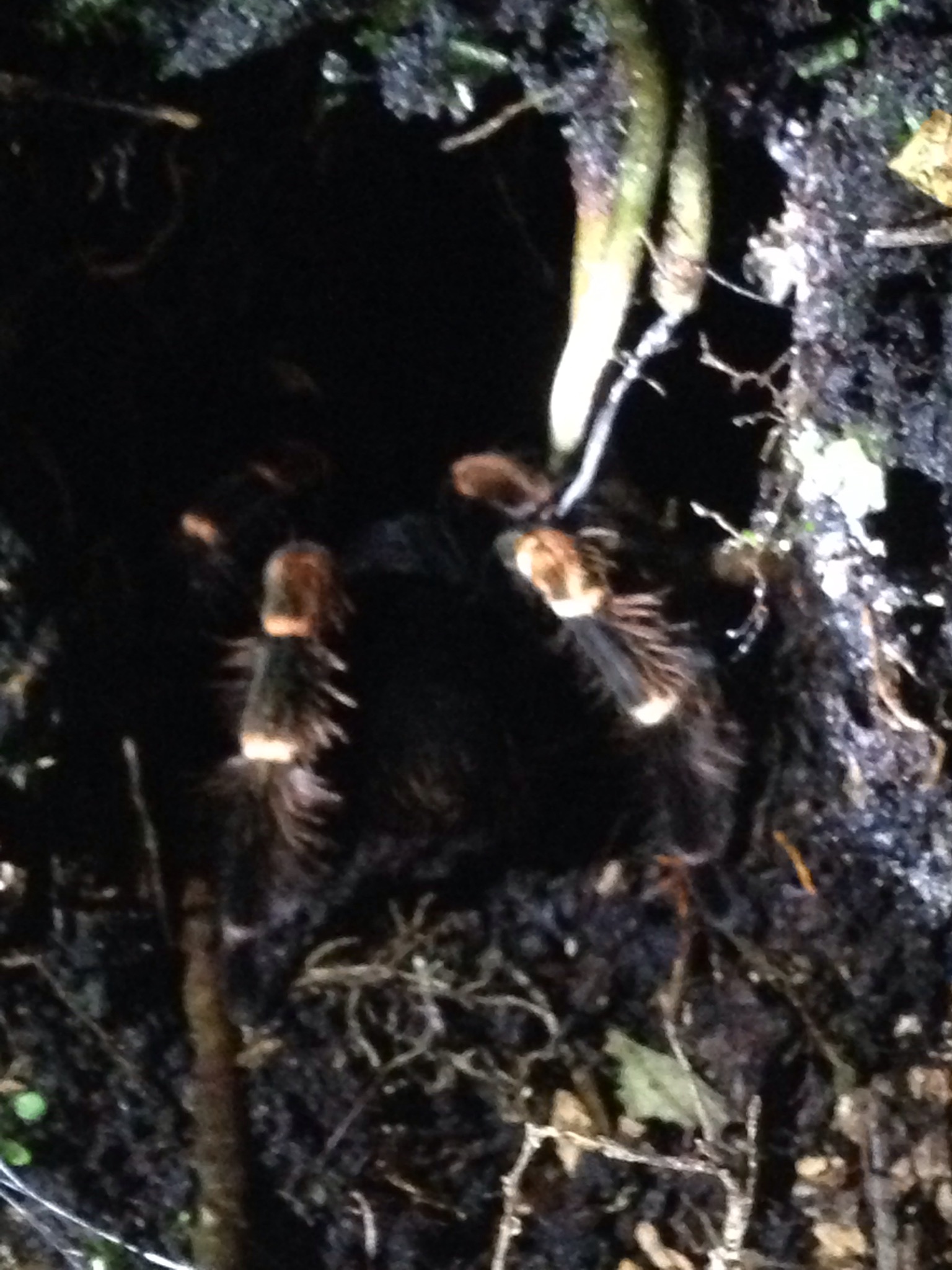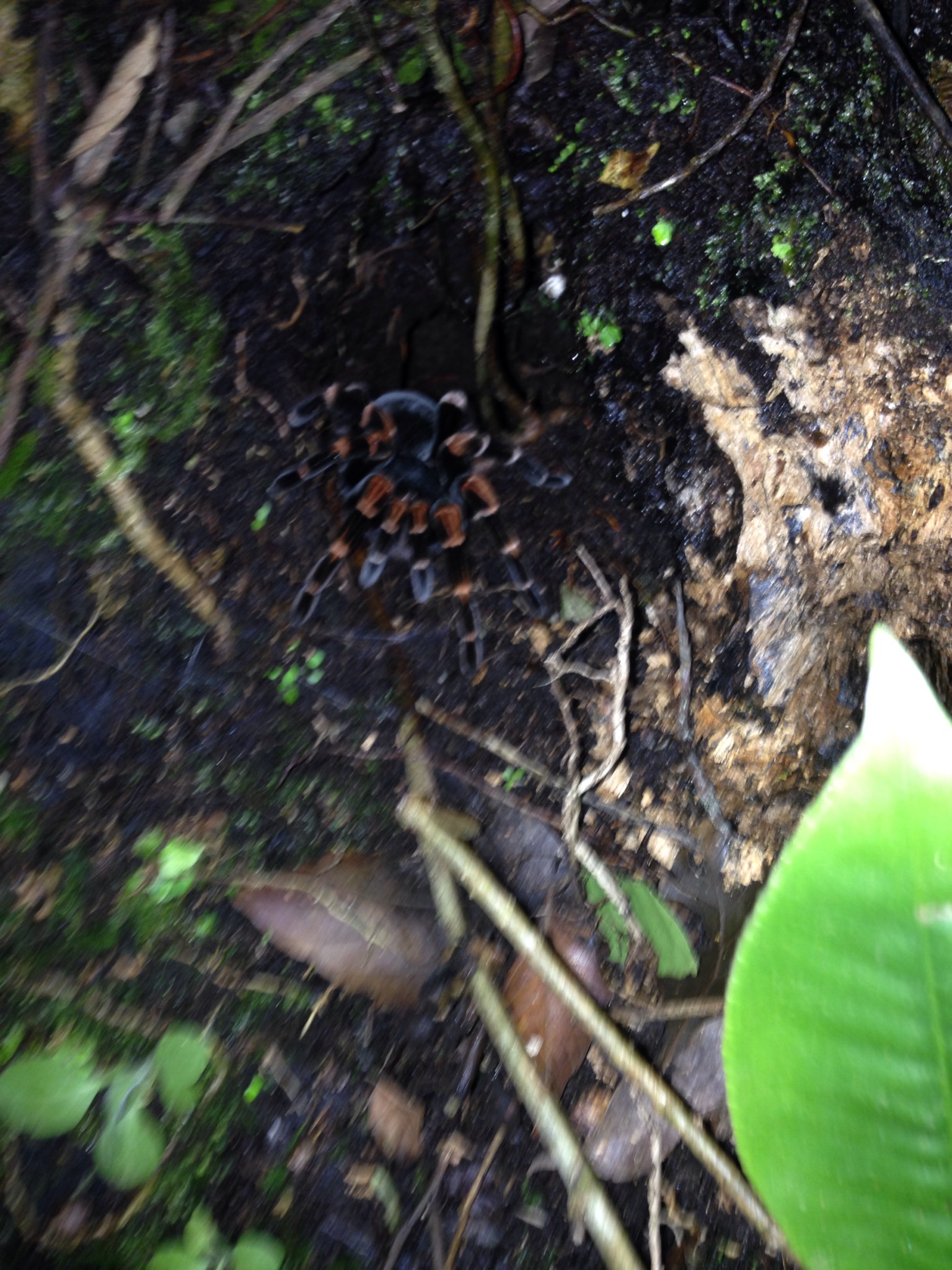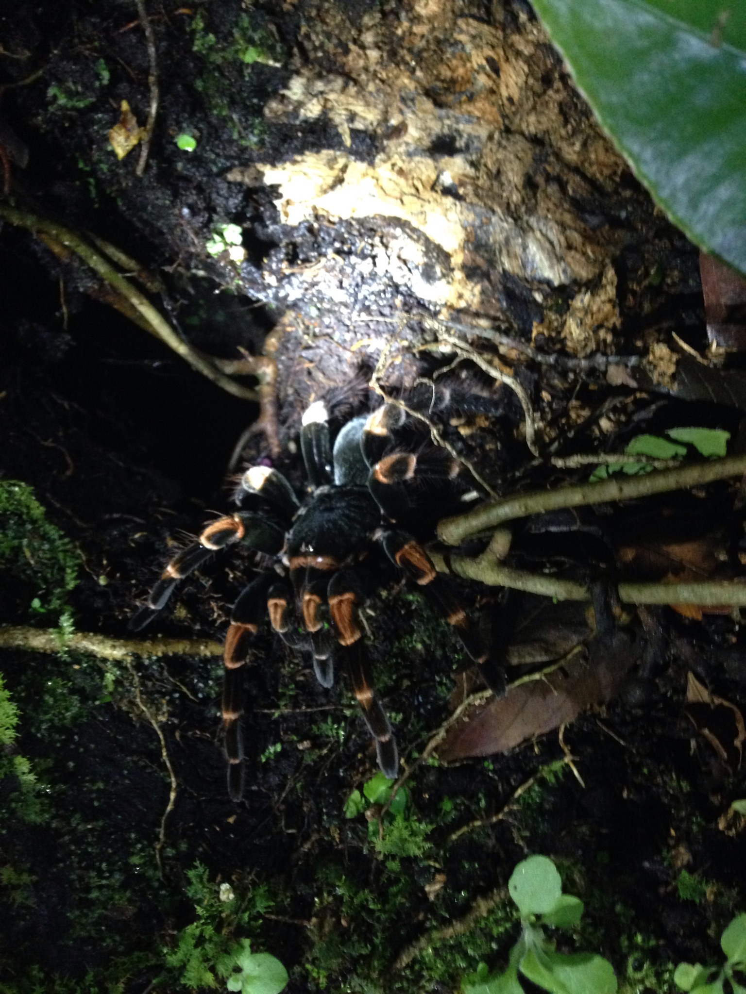 Por la noche hicimos un night tour de 2 horas con guía y linternas donde pudimos ver: perezosos, martilla kinkayu (precioso, como un osito) , tarántulas, víboras verdes, milpiés, arañas, larvas de mariposas….