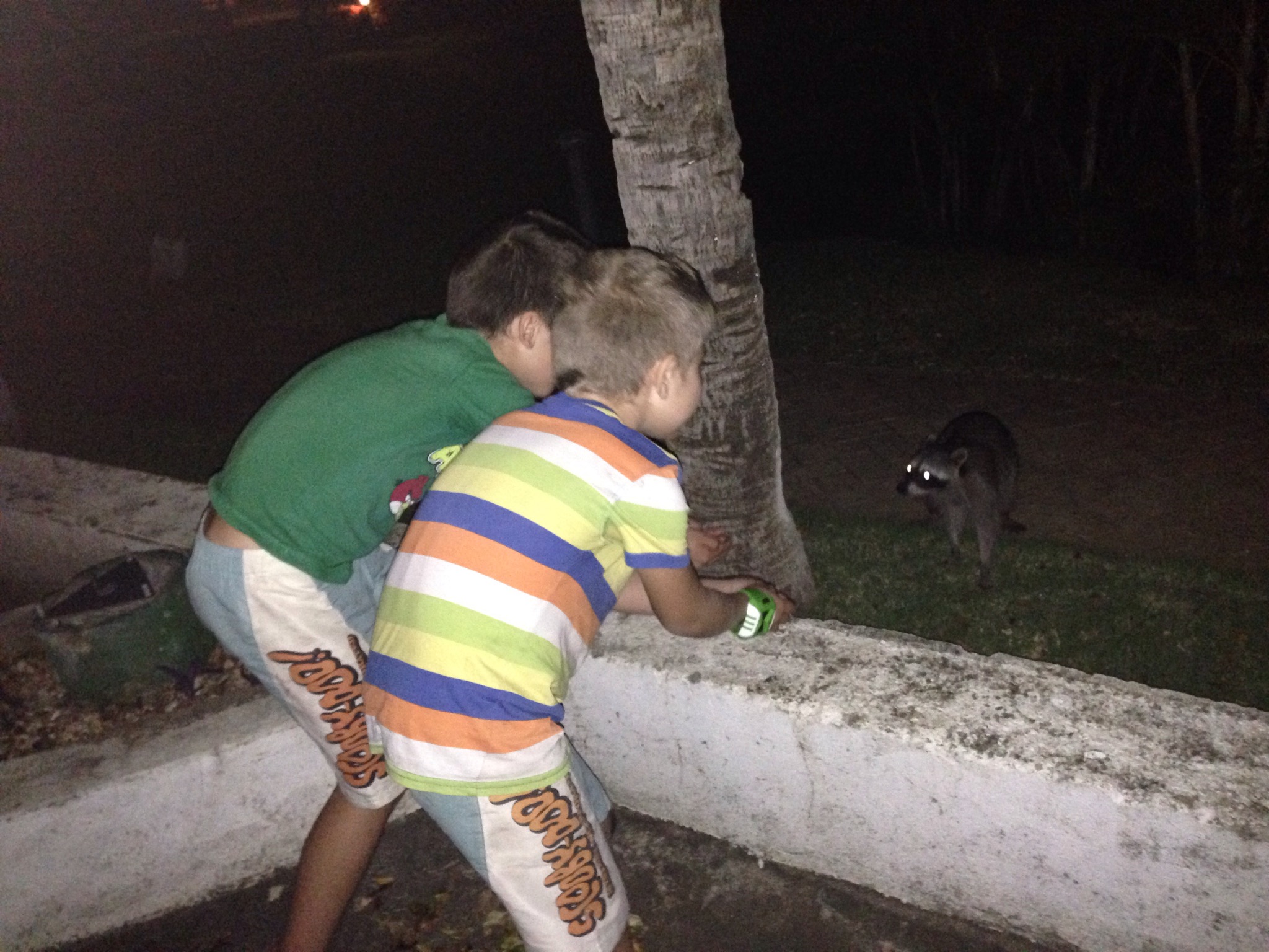 Asier e Iker no para de alucinar con tantos animales. Hasta ahora han visto: mapaches, iguanas, pelicanos, estrellas de mar redondas, hurracas ticas, tortugas, etc.